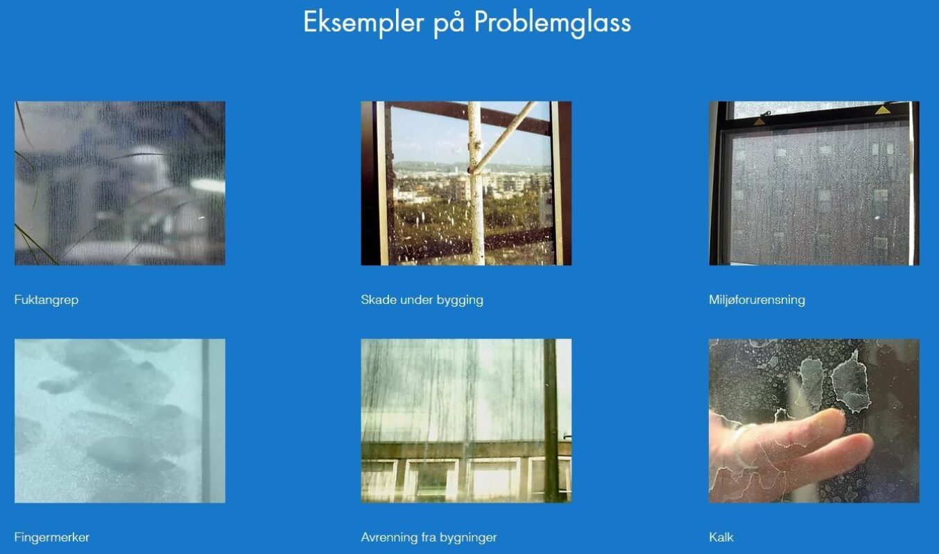 Alle glass i vinduer, dører, rekkverk og fasader i en bygg både utvendig og innvendig trenger beskyttelse og vedlikehold.