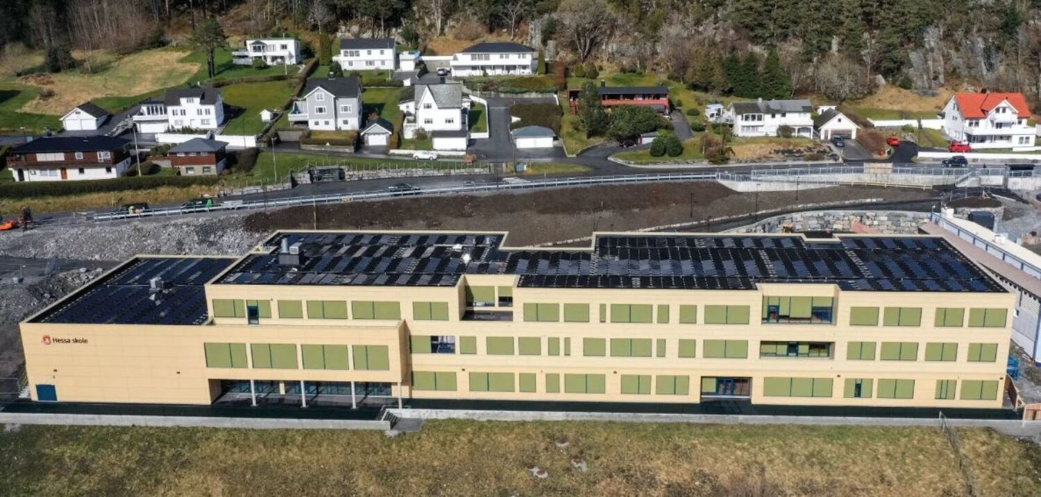 Skolebygget er i tre etasjer med et totalt areal på 6.500 kvadratmeter. Hessa, Ålesund